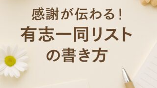 くらし 感謝が伝わる!有志一同リストの書き方【例文&テンプレート付き】 「有志一同」の正しい書き方や並べ方をわかりやすく解説。感謝やお祝いの気持ちを丁寧に伝える文例&テンプレート付きで、初めてでも安心です。 くらし