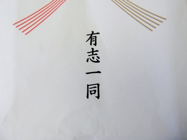 「有志一同(ゆうしいちどう)」とは、同じ気持ちを持った仲間が集まってお祝い・感謝・お悔やみなどを伝えるときに使う言葉です。